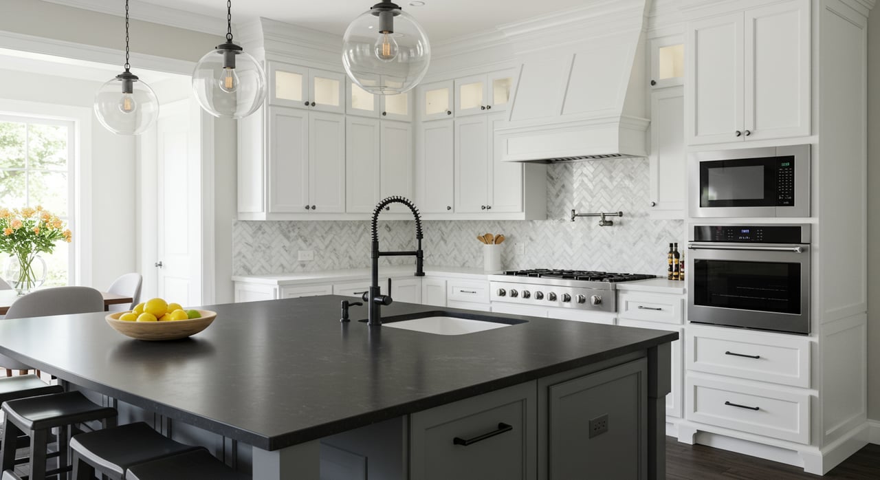 The remodeled kitchen opens up to an extended family room and dining room.